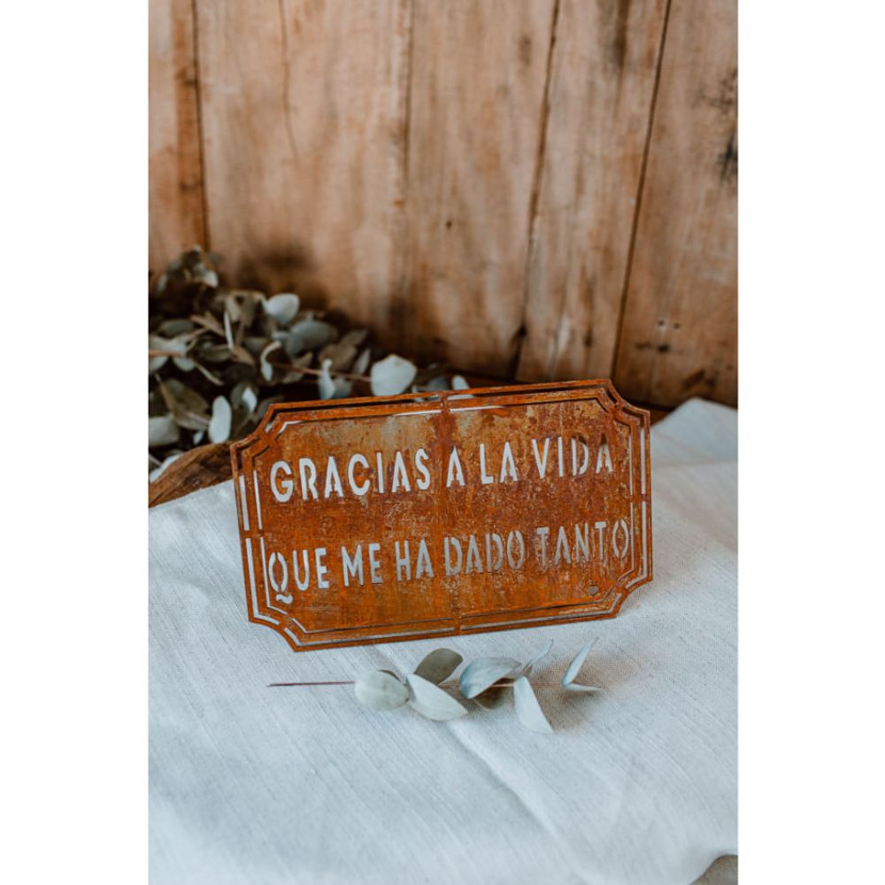 Placa Decorativa Etiqueta em Ferro Gracias a La Vida
