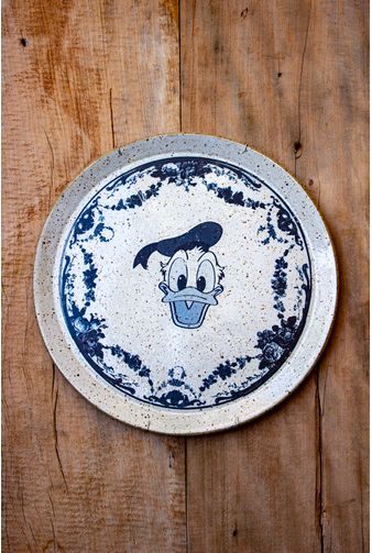 Um clássico do universo pop, agora com moldura vintage e alma irreverente. Esse prato de cerâmica artesanal traz a icônica imagem do "Pato Donald" em contraste com uma borda floral inspirada nas porcelanas antigas — uma mistura inesperada entre o tradicional e o divertido. Com acabamento rústico e visual impactante, é uma peça que chama atenção e arranca sorrisos. Ideal para compor paredes descoladas ou presentear quem ama design com personalidade.