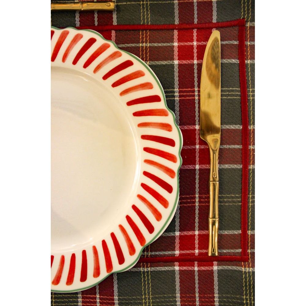 Prato de Jantar em Cerâmica Branca Com Listras Vermelhas Natal