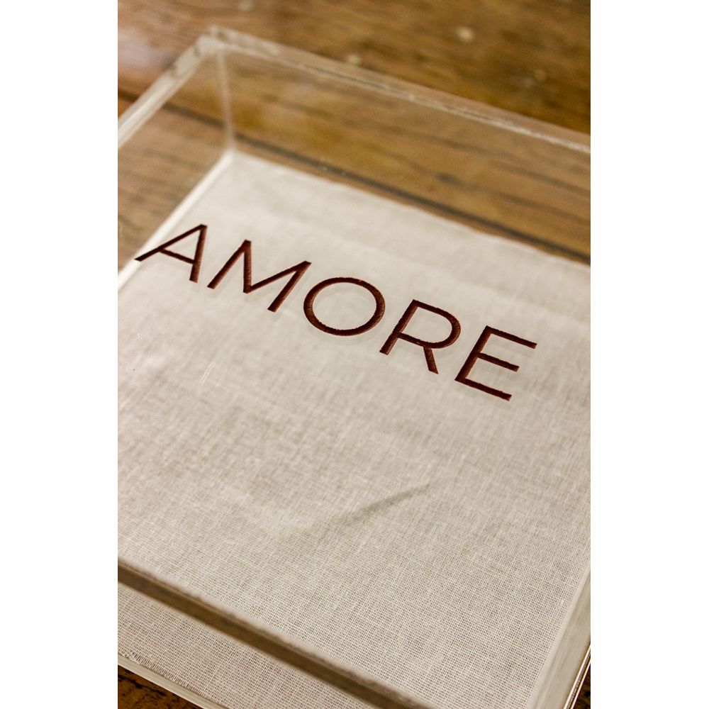 O quadro acrílico é uma peça minimalista com a palavra (Amore), que se destaca em tipografia fina e tom marrom, sobre o fundo do tecido em linho na cor neutro, uma peça sofisticada que combina com diversos ambientes. Ideal para compor paredes decorativas e apoiar sobre estantes ou aparadores, uma obra artística com design clean, transmitindo o amor em sua forma mais pura.