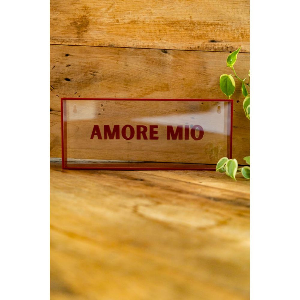 O quadro acrílico com a palavra (Amore mio) em italiano é uma elegante peça, com moldura e tipografia em vermelho com formato 3d que se destaca sobre o fundo translucido, em seu verso contém suporte para fixar na parede, uma peça que traduz charme e afeto, se adapta perfeitamente a espaços modernos, unindo o sofisticado com a inspiração da mensagem que carrega. Ideal para pendurar em paredes ou apoiar em estantes.
