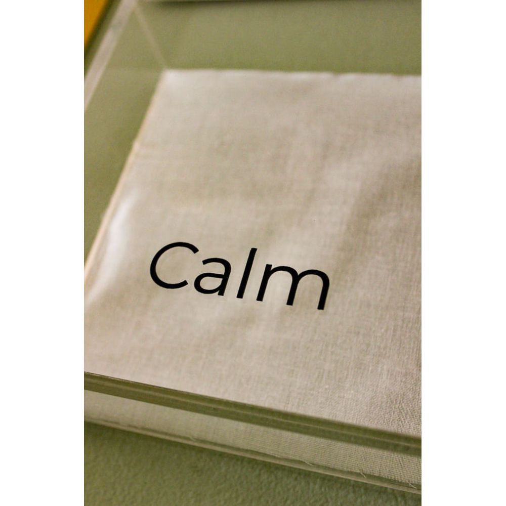 O quadro acrílico é uma peça minimalista com a palavra (Calm) que se destaca em sua tipografia em cor preto, sobre o fundo em tecido linho natural, uma peça que transmite serenidade e calmaria, obra artística artesanal com design clean combinando com diversos estilos de decorações, pendurando em paredes, apoiando em aparadores ou estantes, perfeita para presentear alguém especial.