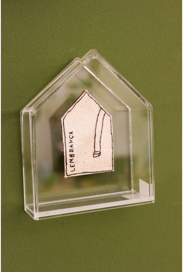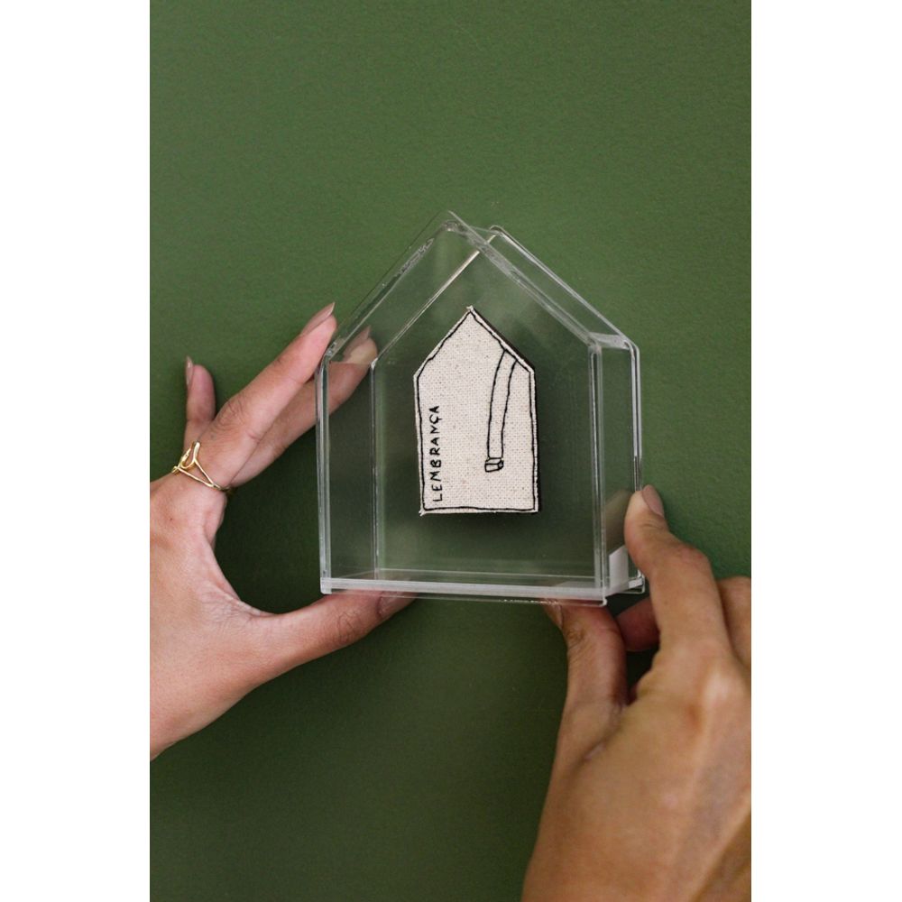 O quadro em acrílico é uma delicada peça em formato de casinha, guardando a plaquinha em bordado com a palavra (Lembrança), a peça que representa memória e afetos, com um design leve combinando com diversos tipos de decorações, decorando com charme e elegância, seu visual poético faz da peça uma escolha especial para decorar cantinhos que pedem beleza com alma.