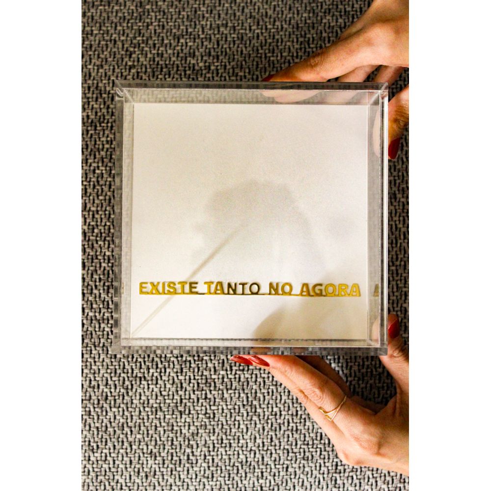 Uma peça clean e requintada, o quadro em material acrílico é composto pela frase (Existe tanto no agora), que se destaca em seu tom dourado refletindo seu brilho dentro do acrílico, aplicado sobre o tecido em linho neutro, uma obra artística delicada repleta de sofisticação que nos leva a reflexão da poesia que carrega, perfeita para decorar paredes e criar combinações, um design versátil que une tons perfeitos para composições. Decore com leveza e arte, ou presenteie alguem especial.