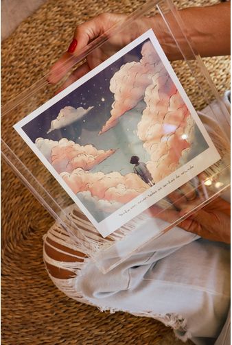 Quadro decorativo com moldura em acrílico feito, parte da coleção "Sonhos", ele vem para transmitir a imensidão de dentro. "Tenho em mim todos os sonhos do mundo". Uma peça inspiradora, para te acompanhar e te lembrar todos os dias do verdadeiro motivo de estarmos aqui: os nossos sonhos.