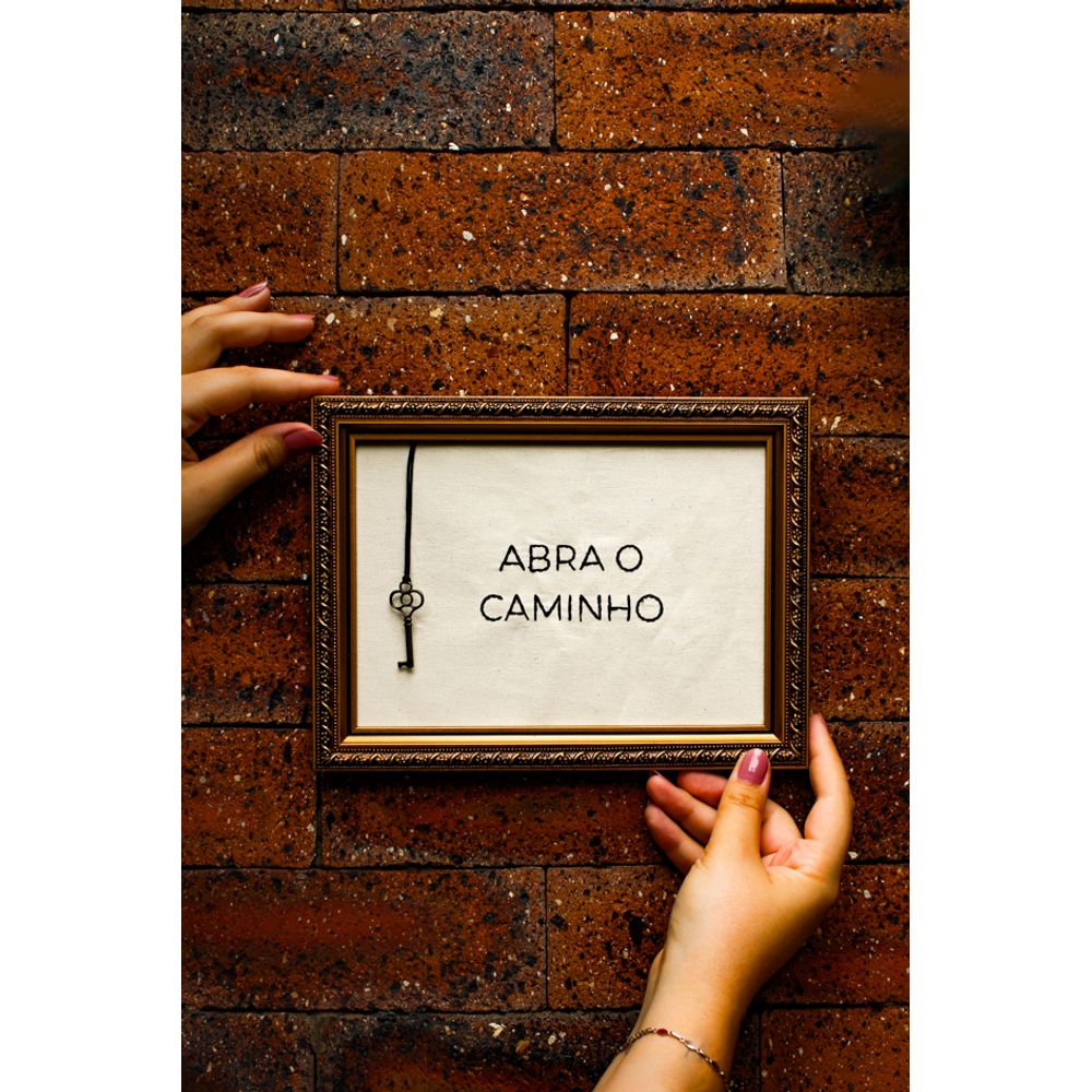 Quadro decorativo que nos leva ao encanto e imaginação, com a frase em delicados pontos bordados (Abra o caminho), cheio de presença que une delicadeza e intenção sua moldura ornamentada traz um ar clássico e elegante, enquanto a chave aplicada ao lado da frase reforça a ideia de abertura, passagem e novos começos. A peça decorativa para pendurar na parede como uma forma de autoridade e elegância.
