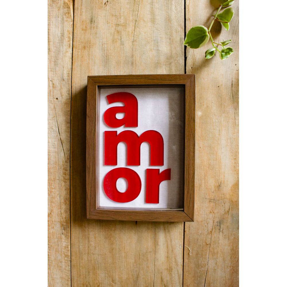 Uma peça artesanal e afetiva, revela a palavra (Amor) em tom vermelho, no material acrílico sobre um tecido neutro, sua moldura em mdf torna a peça rústica e sofisticada, criando um contraste entre os tons. Obra artística cheia de personalidade e afeto, perfeito para decorar ambientes acolhedores e poéticos.