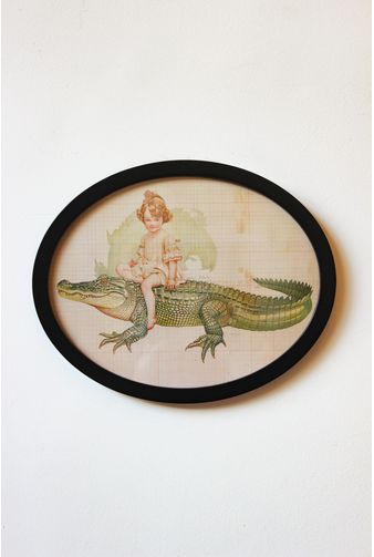 Quadro decorativo com moldura oval em estilo vintage, em um design fora da curva, do jeito que amamos! Greghi nos inspira a sair do óbvio, trazendo um homem com tentáculos de polvo e flores compondo um design único. Uma peça perfeita para compor com um conjunto bem vintage!