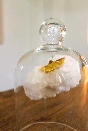 Obra encantadora da talentosa Paty Fernandes! Uma delicada nuvem suspensa dentro de uma redoma de vidro, trazendo um pequeno barco dourado que flutua suavemente. A combinação da leveza da nuvem com o brilho do dourado cria uma peça única, sofisticada e cheia de significado. Perfeita para presentear alguém especial!