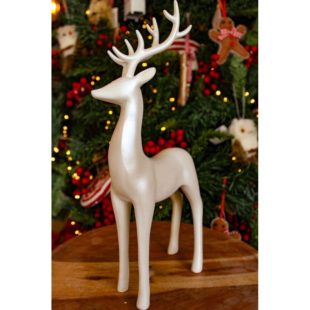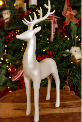 A encantadora rena decorativa no tamanho P, possui seu acabamento todo perolado, trazendo o brilho do natal juntamente com elegância, perfeito para compor decorações natalinas com um toque encantador. A peça contém a cabeça elevada transmitindo o charme da rena, com um belo chifre bem torneado, e orelhas atentas, uma peça que transforma qualquer ambiente com a sua presença imponente.